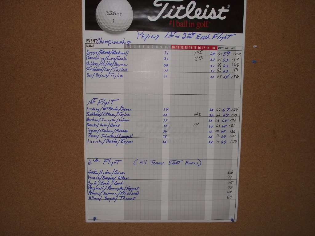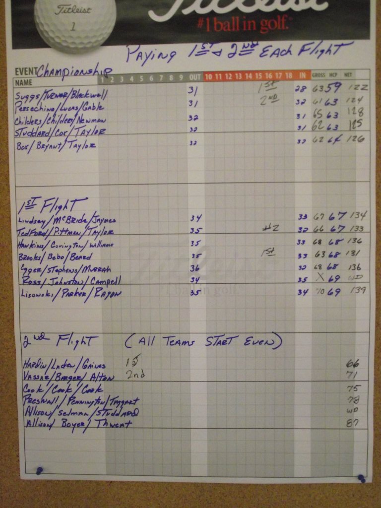 For one person (Clint Turner, Corinth, MS ) it was an event to remember. Clint had a hole in one on number 13, Won closet to the pin monies of Hole 15 and his team won first place in the championship flight. Quite a weekend.