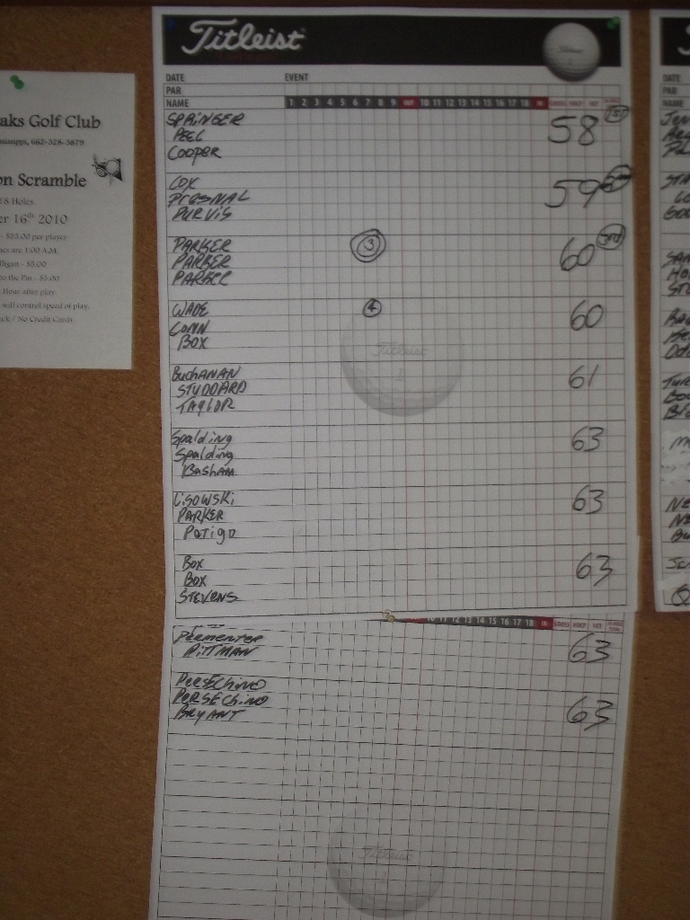 Again, on behalf for the Green Oaks Tournament Committee, Thank you one and all.